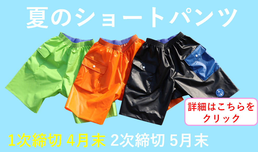 今年も雨合羽屋のショートパンツ 2026の受注生産の募集を開始します。